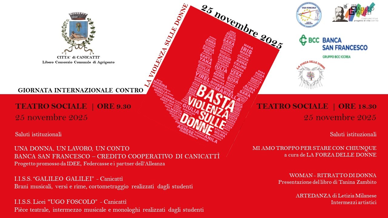Martedì 25 novembre, l'Amministrazione Comunale, in collaborazione con la Banca San Francesco – Credito Cooperativo, l'associazione "La Forza delle Donne", i Licei "Ugo Foscolo" e I.T "Galileo Galilei", promuove una serie di iniziative mirate a sensibilizzare e promuovere la cultura del rispetto e della non violenza.