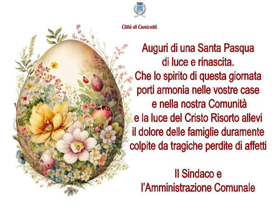 Il Sindaco Vincenzo Corbo e l'Amministrazione Comunale formulano alla Cittadinanza gli auguri di una Felice e Santa Pasqua