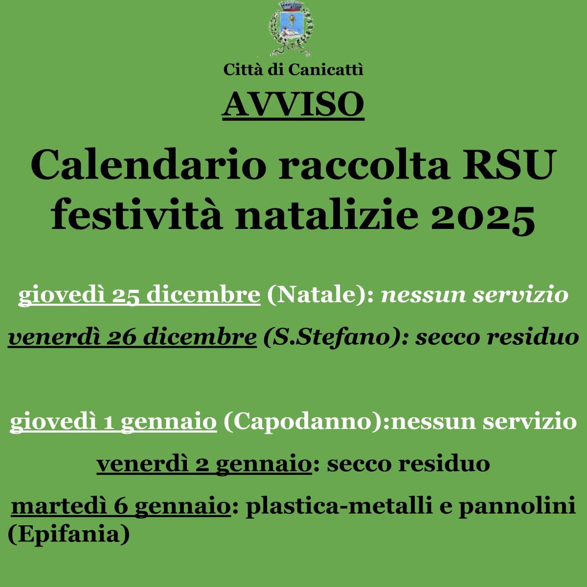 Informiamo che, in concomitanza delle festività natalizie, il calendario della raccolta differenziata porta a porta subirà delle temporanee modifiche.